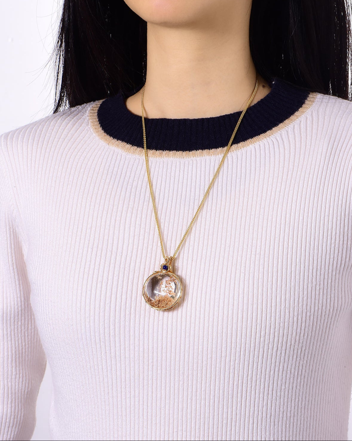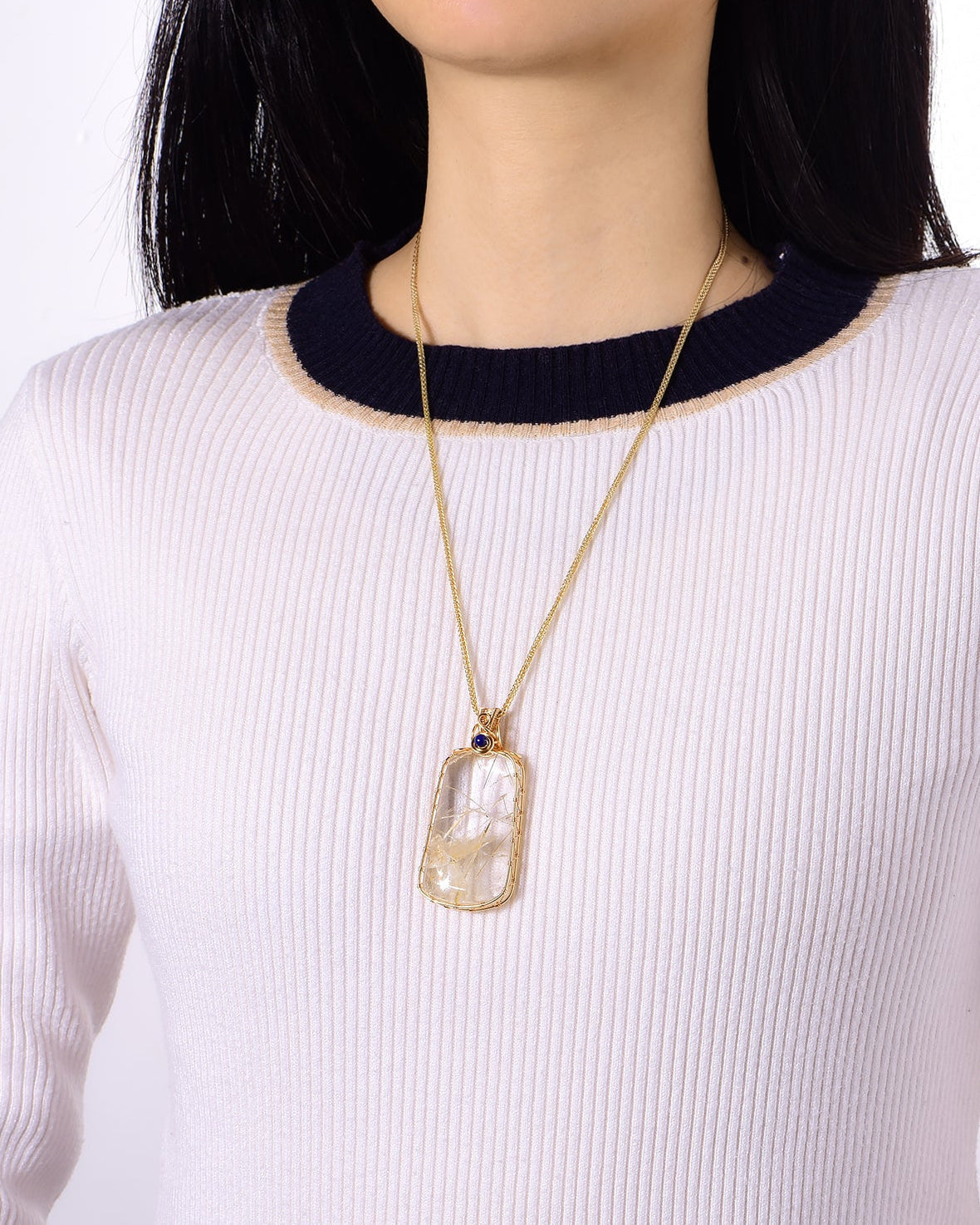 white “rabbit hair” quartz pendant